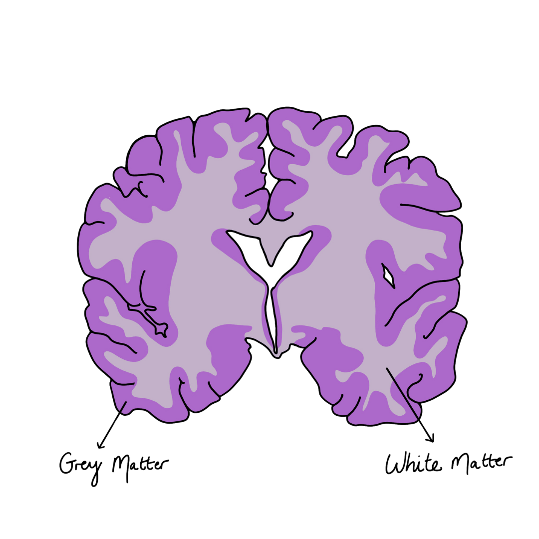 The Brain itself is made up of both grey and white matter - the grey matter is a darker portion of brain tissue which sits on the outer section of the brain. It is primarily responsible for processing and interpreting information. The inside of the brain is known as white matter. This area transmits the information to other parts of the body. With these two different types of brain tissue, the brain is able to send and receive chemical and electrical signals. It is this that allows the brain to control so many bodily processes.
