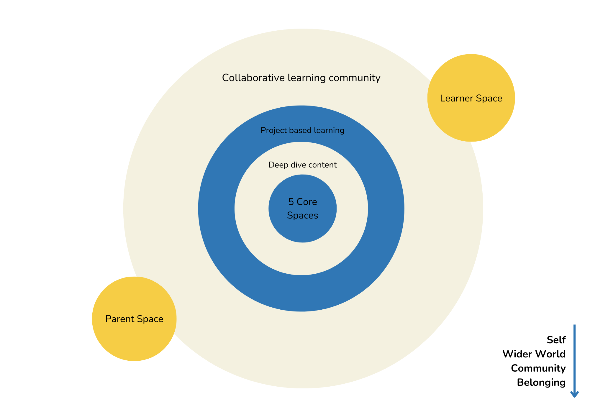 An interactive educational ecosystem hosted online, which young people can safely and freely explore. Along side this knowledge base, there will be a dedicated community space for learners and parents to gain support and connect with each other. With experienced admins / mentors available to support young people in their explorations.